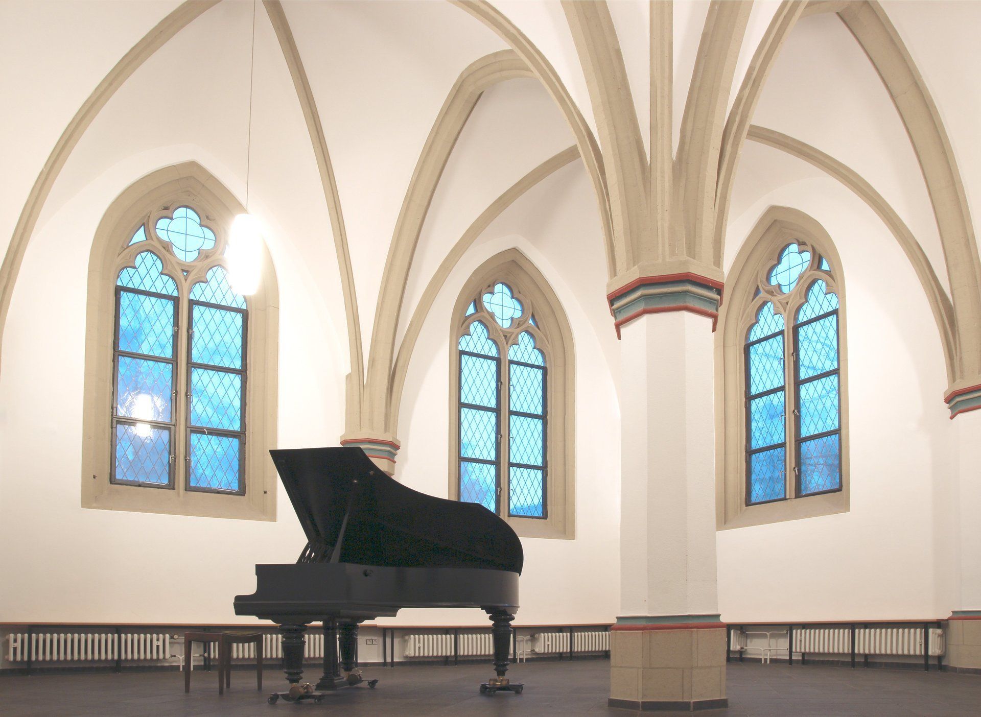 Die gestalterischen und technischen Anforderungen hatten sich nun, nach Jahrhunderten des zurückgezogenen Lebens der Kartäuser Mönche, der Nutzung einer lebendigen, Evangelischen Gemeinde zu stellen, die sich Kirche und angrenzende Säle mit der Evangelischen Gehörlosengemeinde Köln teilt. So war der Kapitelsaal der Kartause, also der ehemalige Versammlungsort der Mönche, als Saal zu Versammlungszwecken aus heutiger Sicht nicht nutzbar. Wurde zu Zeiten der klösterlichen Gemeinschaft vorgelesen oder beraten, so wurde das Reden durch den Schall, der sich durch die Art und Weise eines Gewölbesaales ausbreitet, aufbaut und von Wänden und Gewölbedecken zurückgeworfen wird, begünstigt. Derselbe Schall machte aber jegliche Art von größerer Zusammenkunft neben dem Vorlesen schwierig, Feierlichkeiten zum Beispiel wurden durch den schallbedingten Lärm unerträglich. Eine Schalldämmung des Kapitelsaales an Wänden und Boden mit einem „weichen“ Material war nicht möglich, so dass nur die Dämmung der Gewölbedecke in Frage kam. Die Architekten bedienten sich einer Dämmmethode, welche sie aus dem Cinema – Bereich kannten: Spezielle Dämmmatten werden in kleine Stücke geschnitten in die Rundung der Gewölbe eingebracht, von Hand geschliffen und anschließend mit einem Cellulose – Material besprüht. Das Ergebnis ist eine Oberfläche, die sich optisch nicht von dem Putz an den Wänden unterscheiden lässt, als Schalldämmung aber in dem Kapitelsaal Nutzungen aller Art zulässt. Der Kreuzgangsaal der Kartause war als großer Gemeindesaal ebenfalls wie die Nebenanlagen vollständig zu restaurieren. Artefactum recherchierte, dass die Bodenbeläge in dem historischen, den Sälen angrenzenden Kreuzgang, mit Steinplatten aus Mendiger Basalt ausgelegt sind und der Steinbruch in der Eifel, der schon vor Hunderten von Jahren dem Kloster als Materiallieferant diente, noch existiert.